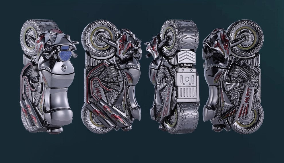 * UNIQUE COMBINABLE DESIGN: A single Zippo lighter is encased by two armor parts to form a complete motorcycle, offering a unique interactive experience.